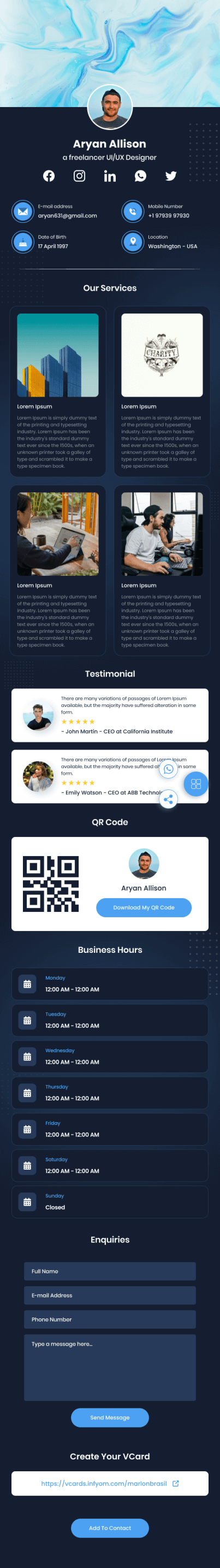 vCard de perfil ejecutivo